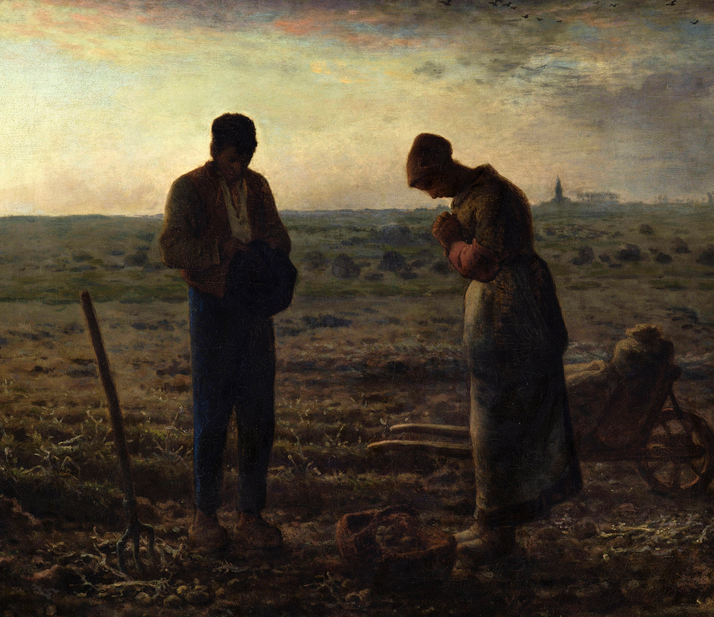 어릴 때 미술 수업시간에 본 그림일만큼 아주 유명한 그림이다. 1854년 그린 작품을 각색한 작품이다. 이 작품은 여인들이 추수 이후에 남겨진 이삭들을 줍고 있는 장면을 그림으로서 식량이 부족했던 유럽과 아메리카의 노동자계급에 대한 삶을 그린 상징이었다. 당시 추수 이후에 남겨진 이삭을 줍는 일은 매우 하층민의 삶을 보여주는 것인데, 밀레의 첫 번째 그림에서는 여인들 옆에 시중드는 종까지 그려 당시 가난하고 멸시받는 민중을 귀족이나 왕처럼 존귀한 인물로 표현했었다. 하지만 이 각색한 작품에서는 시종은 없으나 빛을 통하여 여인들을 비추고 있다.
